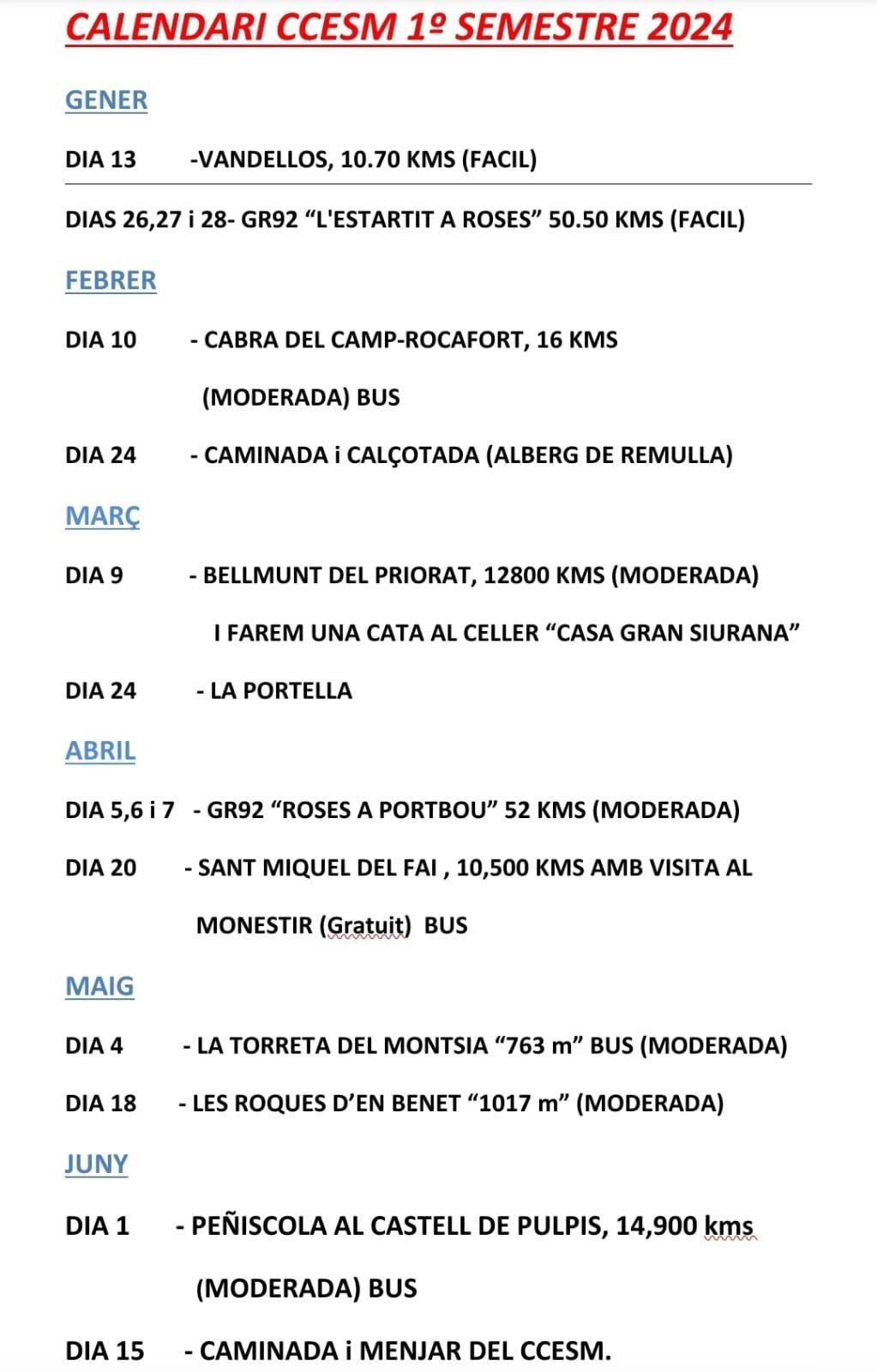 Ja tenim preparat el calendari per al primer semestre del 2024.
