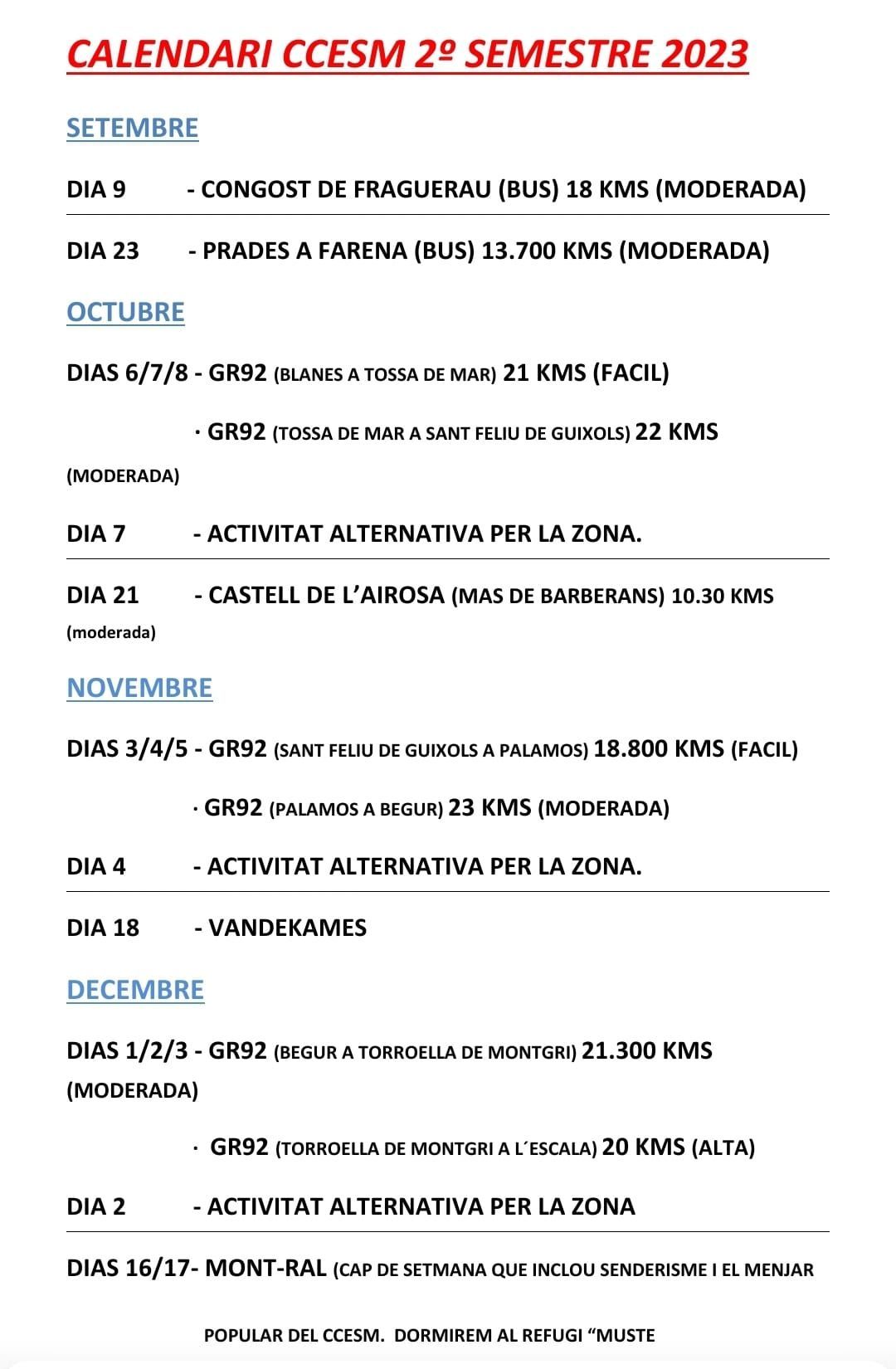 Ja tenim preparat el calendari per al segon semestre del 2023.